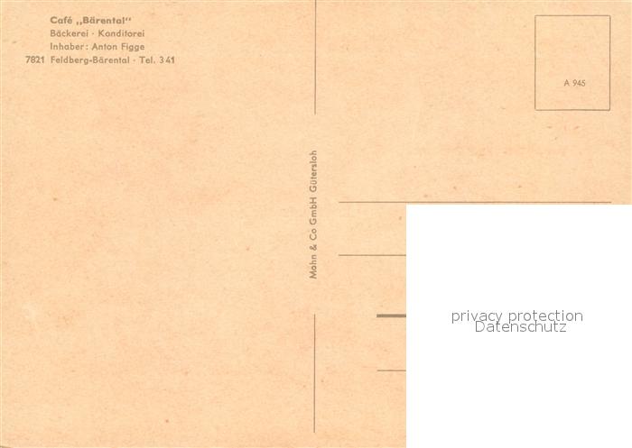 73105754 Baerental Feldberg Cafe postalisch nicht gelaufen Erhaltung siehe scans [KathaD81] KatCode: 11110008315037