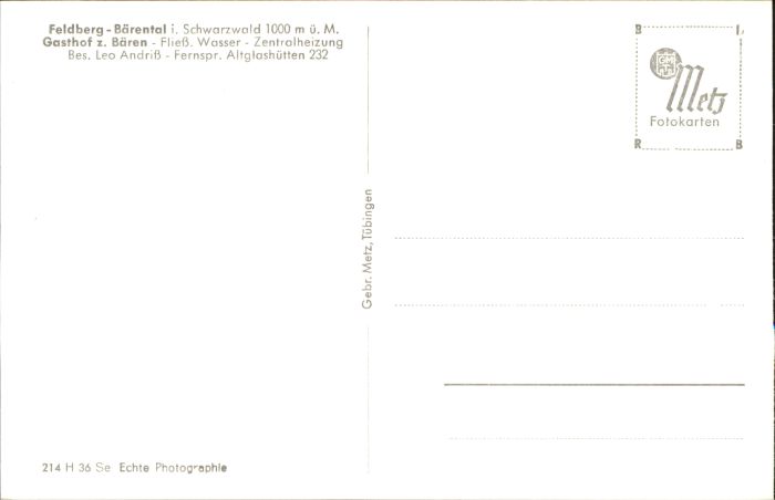40805466 Baerental Feldberg chwarzwald Gasthof zum Baeren Altglashuetten * postalisch nicht gelaufen Alte Ansichtskarte Postkarte Katcode 11110008315037