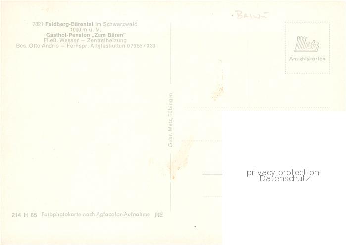 73845825 Baerental Feldberg Gasthof Pension Zum Baeren Gaststube postalisch nicht gelaufen Erhaltung siehe scans [FriedD77] KatCode: 11110008315037