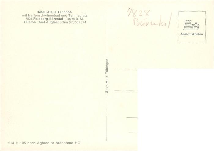 73931232 Baerental Feldberg Hotel Haus Tannenhof postalisch nicht gelaufen Erhaltung siehe scans [WerneD78] KatCode: 11110008315037
