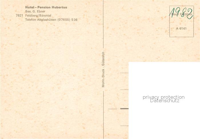 73844761 Baerental Feldberg Hotel Pension Hubertus postalisch nicht gelaufen Erhaltung siehe scans [WerneD78] KatCode: 11110008315037