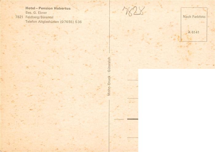 73931229 Baerental Feldberg Hotel Pension Hubertus postalisch nicht gelaufen Erhaltung siehe scans [WerneD78] KatCode: 11110008315037