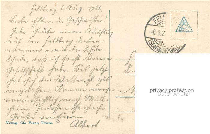 73623124 alte Postkarte Baerental Feldberg mit Titisee postalisch gelaufen Erhaltung siehe scans [WerneD78] KatCode: 11110008315037