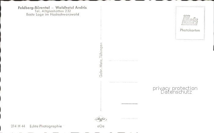 41759325 Baerental Feldberg Waldhotel Andris postalisch nicht gelaufen Erhaltung siehe scans KatCode: 11110008315037