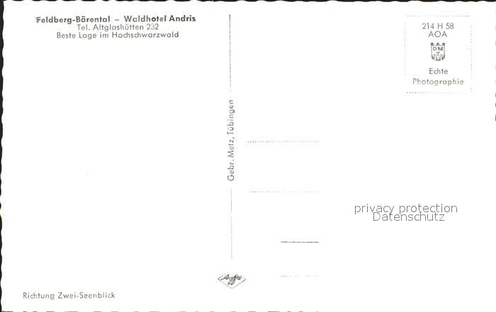 41759313 Baerental Feldberg Waldhotel Andris postalisch nicht gelaufen Erhaltung siehe scans KatCode: 11110008315037