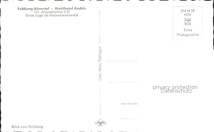 41759312 Baerental Feldberg Waldhotel Andris postalisch nicht gelaufen Erhaltung siehe scans KatCode: 11110008315037