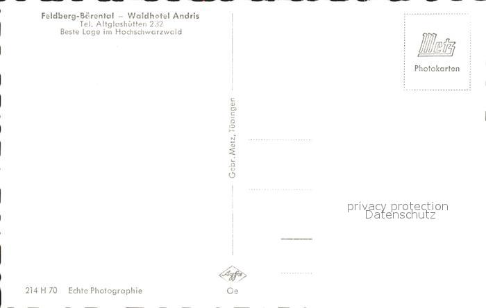 41759303 Baerental Feldberg Waldhotel Andris postalisch nicht gelaufen Erhaltung siehe scans KatCode: 11110008315037