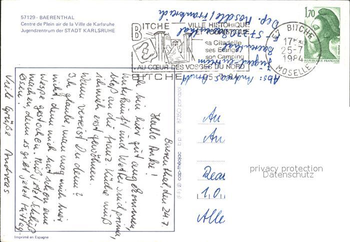 12434986 carte postale Baerenthal Jugendzentrum postalisch gelaufen Erhaltung siehe scans KatCode: 11170057657046