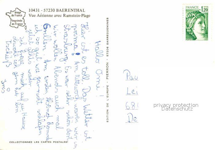 12619497 Baerenthal Vue aerienne avec Ramstein Plage postalisch nicht gelaufen Erhaltung siehe scans [FriedD77] KatCode: 11170057657046