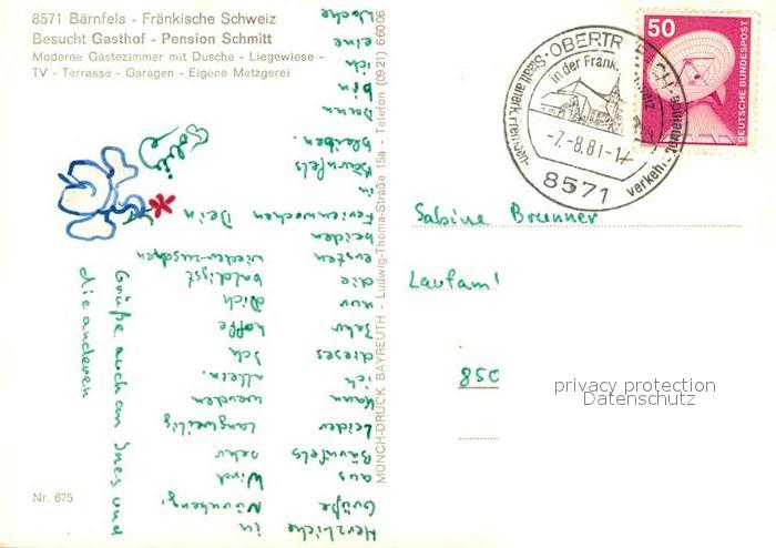 73223800 alte Postkarte Baernfels Gasthaus Pension Schmitt postalisch gelaufen Erhaltung siehe scans [LiesaD40] KatCode: 11110009474156