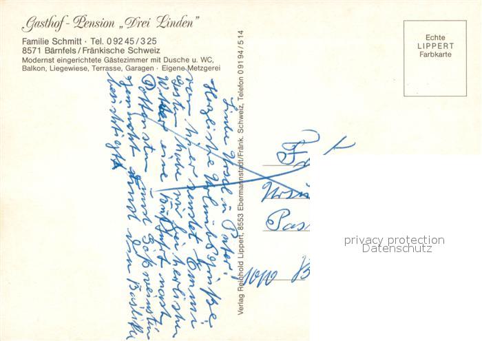 73653617 Baernfels Gasthof Pension Drei Linden Fraenkische Schweiz postalisch nicht gelaufen Erhaltung siehe scans [FriedD77] KatCode: 11110009474156