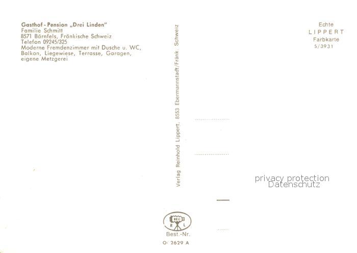 73204372 Baernfels Gasthof Pension Drei Linden See Landschaft Fraenkische Schweiz Felsen postalisch nicht gelaufen Erhaltung siehe scans [FriedD77] KatCode: 11110009474156