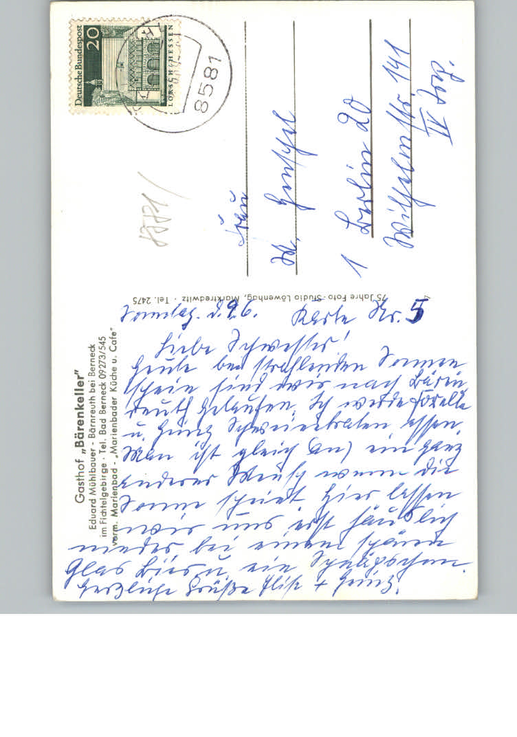 31170517 Baernreuth Bad Berneck Gasthof Baerenkeller postalisch nicht gelaufen KatCode: 11110009472116