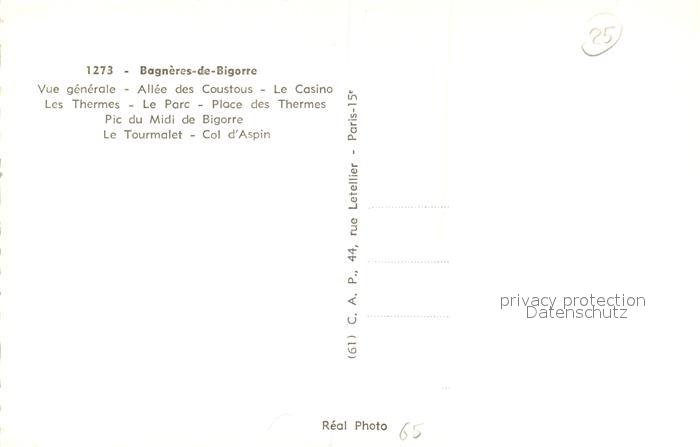 13483301 Bagneres-de-Bigorre Allée des Coustous Casino les Thermes Parc Place Pic du Midi Le Tourmalet Col d Aspin postalisch nicht gelaufen Erhaltung siehe scans [FriedD77] KatCode: 11170065265059