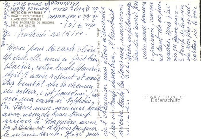 12328657 Bagneres-de-Bigorre Hotel des Pyrenees postalisch nicht gelaufen Erhaltung siehe scans KatCode: 11170065265059