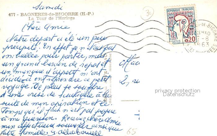 13483179 carte postale Bagneres-de-Bigorre La Tour de l Horloge postalisch gelaufen Erhaltung siehe scans [FriedD77] KatCode: 11170065265059