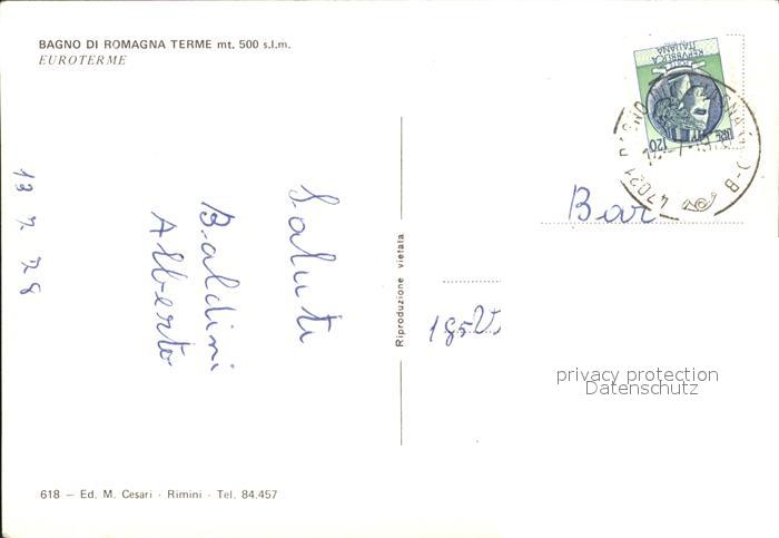 old postcard Bagno di Romagna Euroterme sala da pranzo soggiorno camera da letto postalisch gelaufen Erhaltung siehe scans
