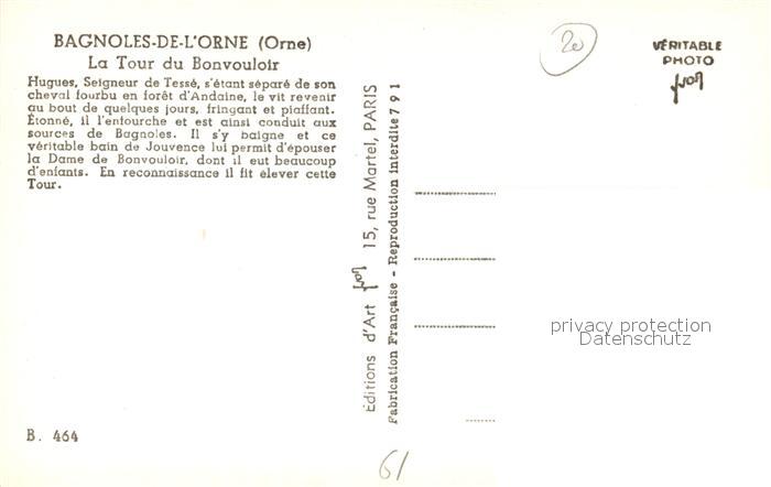 13524766 Bagnoles-de-l Orne La Tour du Bonvouloir postalisch nicht gelaufen Erhaltung siehe scans [FriedD77] KatCode: 11170061161483