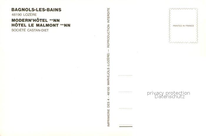 13219831 Bagnols-les-Bains Hotel Le Malmont postalisch nicht gelaufen Erhaltung siehe scans [FriedD77] KatCode: 11170048248014