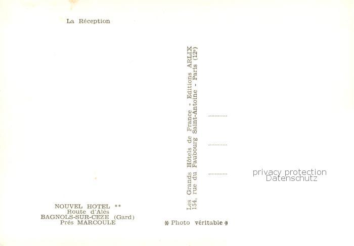 13772967 Bagnols-sur-Ceze Nouvel Hotels La Reception postalisch nicht gelaufen Erhaltung siehe scans [WerneD78] Wern Katcode 11170030230028