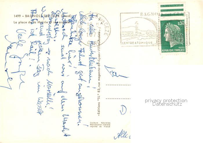 13249167 carte postale Bagnols-sur-Ceze Place de la Mairie et ses arcades postalisch gelaufen Erhaltung siehe scans [FriedD77] KatCode: 11170030230028