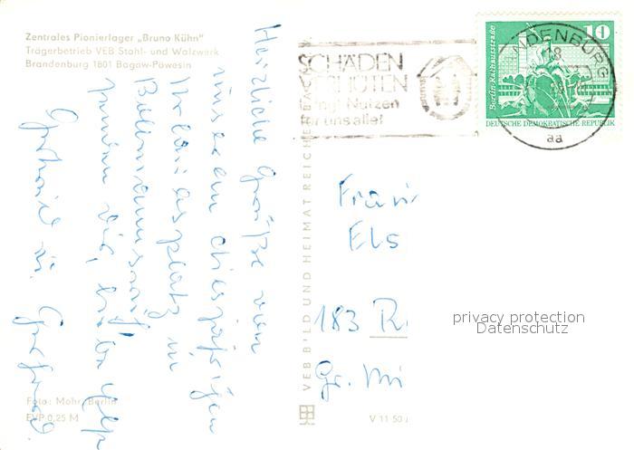 73574285 alte Postkarte Bagow Zentrales Pionierlager Bruno Kuehn Badestrand am See postalisch gelaufen Erhaltung siehe scans [FriedD77] KatCode: 11110012069460