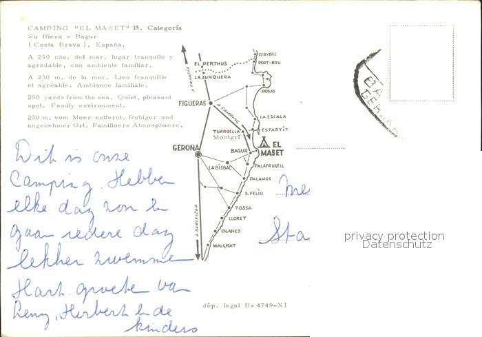 old postcard Bagur Camping El Maset Bucht Kueste postalisch gelaufen Erhaltung siehe scans