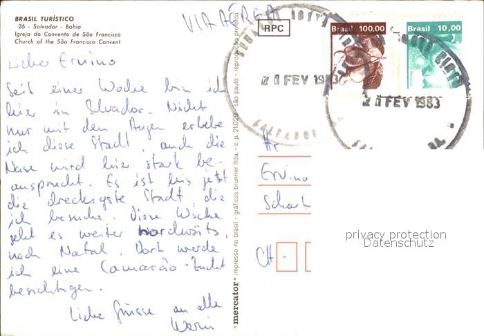 alte Postkarte Bahia Brasilien Sankt Franziskuskirche postalisch gelaufen Erhaltung siehe scans