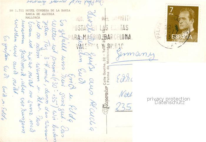 old postcard Bahia de Alcudia Hotel Condesa de la Bahia postalisch gelaufen Erhaltung siehe scans [NatalD47]