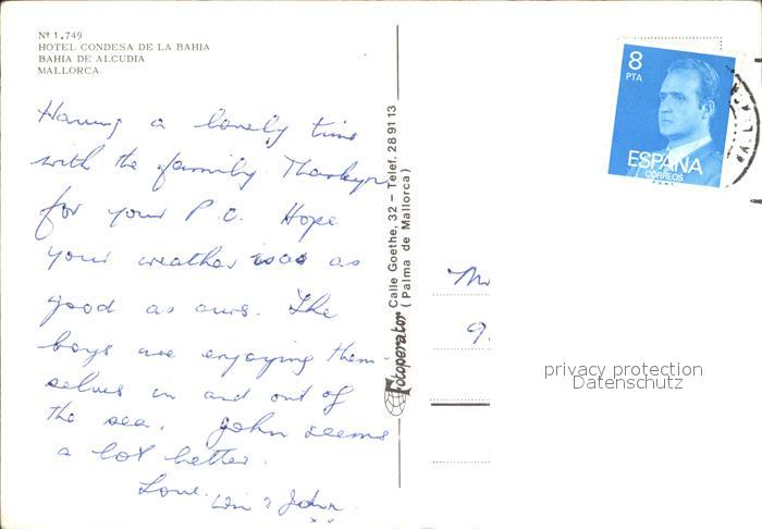 old postcard Bahia de Alcudia Hotel Condesa de La Bahia Pool postalisch gelaufen Erhaltung siehe scans