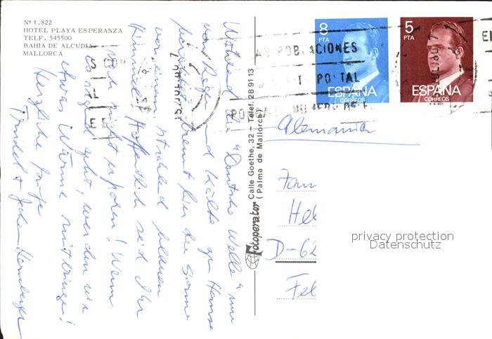 old postcard Bahia de Alcudia Hotel Playa Esperanza Swimming Pool Park postalisch gelaufen Erhaltung siehe scans