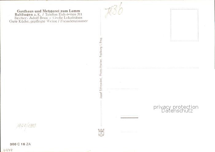 31735081 Bahlingen Gasthaus Metzgerei zum Lamm Adolf Boos postalisch nicht gelaufen Erhaltung siehe scans KatCode: 11110008316002