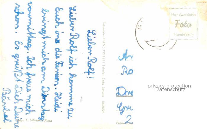 72642932 alte Postkarte Bahra Saechsische Schweiz Ansicht vom Waldrand aus Ruhebank Handabzug postalisch gelaufen Erhaltung siehe scans [FriedD77] KatCode: 11110014287015