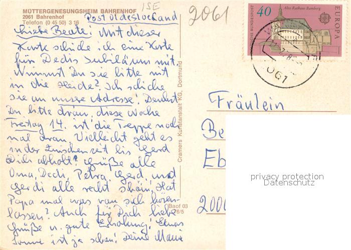 73714203 alte Postkarte Bahrenhof Muettergenesungsheim Bahrenhof Aussenansicht postalisch gelaufen Erhaltung siehe scans [LiesaD40] KatCode: 11110001060006