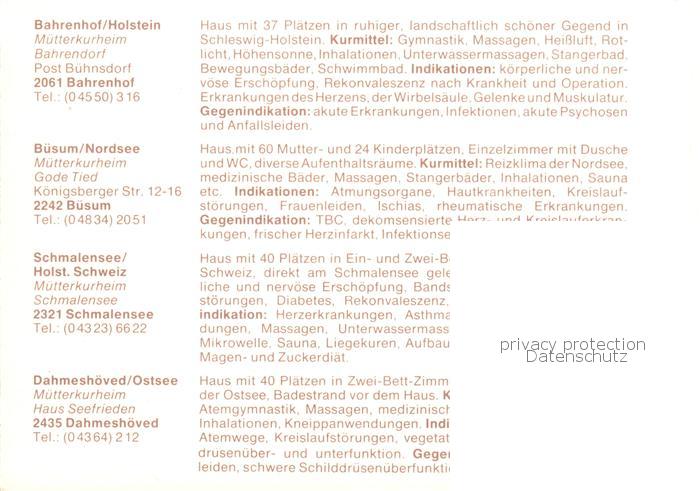 73859209 Bahrenhof Muetterkurheim Bahrenhof Buesum Schmalensee Dahmeshoeved postalisch nicht gelaufen Werbekarte (keine Postkarte) Erhaltung siehe scans [WerneD78] KatCode: 11110001060006