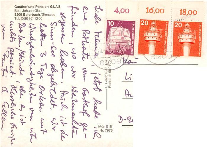 73900598 Baierbach Rosenheim Gasthof Pension Glas Gastraeume Simssee postalisch nicht gelaufen Erhaltung siehe scans [WerneD78] KatCode: 11110009187177