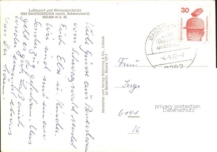 71946943 alte Postkarte Baiersbronn Schwarzwald postalisch gelaufen Erhaltung siehe scans KatCode: 11110008237004