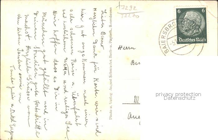 41800906 alte Postkarte Baiersbronn Schwarzwald postalisch gelaufen Erhaltung siehe scans KatCode: 11110008237004