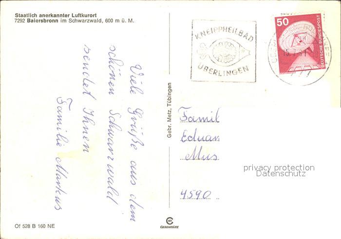 72511604 alte Postkarte Baiersbronn Schwarzwald postalisch gelaufen Erhaltung siehe scans KatCode: 11110008237004