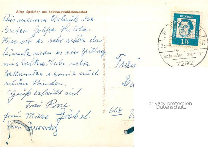 73249085 alte Postkarte Baiersbronn Schwarzwald Alter Speicher am Schwarzwald Bauernhof postalisch gelaufen Erhaltung siehe scans [FriedD77] KatCode: 11110008237004