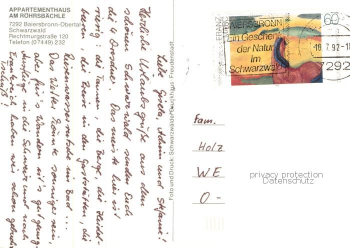 73785821 alte Postkarte Baiersbronn Schwarzwald Appartementhaus am Roehrsbaechle postalisch gelaufen Erhaltung siehe scans [WerneD78] KatCode: 11110008237004
