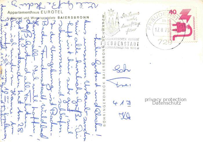 74043996 alte Postkarte Baiersbronn Schwarzwald Appartementhaus Eurotel postalisch gelaufen Erhaltung siehe scans [WerneD78] KatCode: 11110008237004