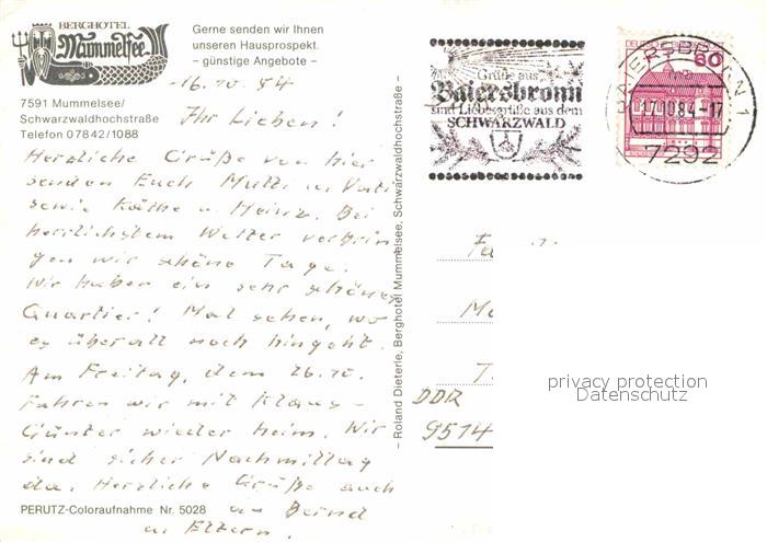 72760615 alte Postkarte Baiersbronn Schwarzwald Berghotel Mummelsee postalisch gelaufen Erhaltung siehe scans [LiesaD40] KatCode: 11110008237004