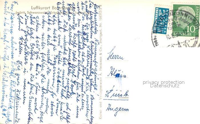 72991605 alte Postkarte Baiersbronn Schwarzwald Erholungsheim Schoenblick postalisch gelaufen Erhaltung siehe scans [AndreD76] KatCode: 11110008237004