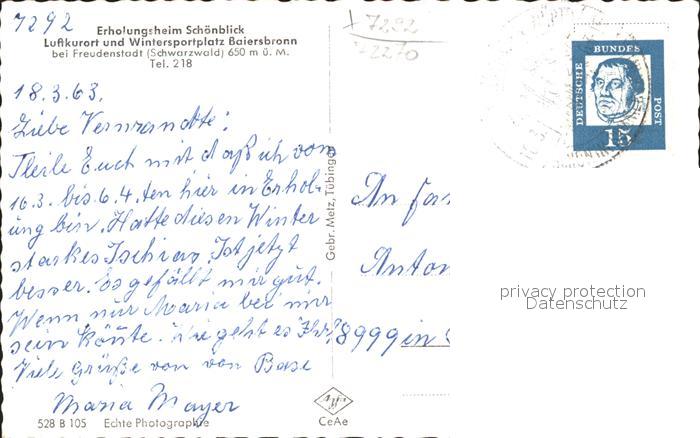 41800907 alte Postkarte Baiersbronn Schwarzwald Erholungsheim Schoenblick postalisch gelaufen Erhaltung siehe scans KatCode: 11110008237004