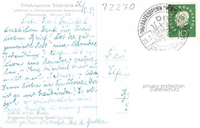 72891364 alte Postkarte Baiersbronn Schwarzwald Erholungsheim Schoenblick Fliegeraufnahme postalisch gelaufen Erhaltung siehe scans [PaolaD17] KatCode: 11110008237004