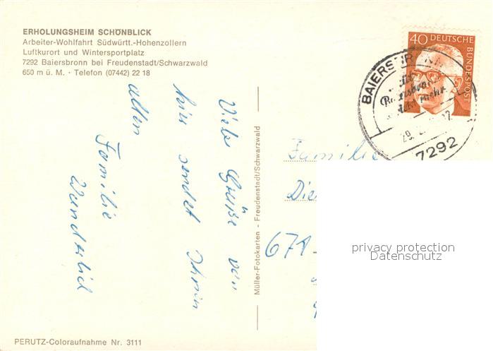 73614988 alte Postkarte Baiersbronn Schwarzwald Erholungsheim Schoenblick Gastraeume postalisch gelaufen Erhaltung siehe scans [WerneD78] KatCode: 11110008237004