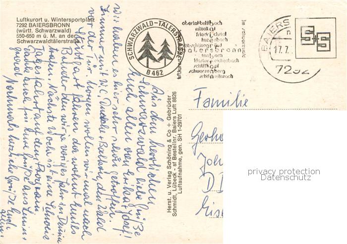 73761228 alte Postkarte Baiersbronn Schwarzwald Fliegeraufnahme postalisch gelaufen Erhaltung siehe scans [WerneD78] KatCode: 11110008237004