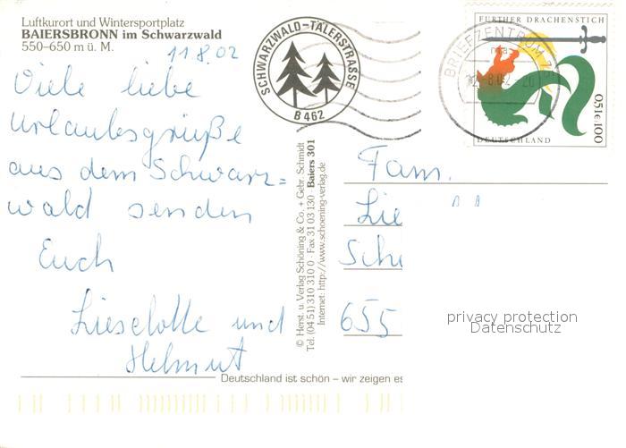 73685601 alte Postkarte Baiersbronn Schwarzwald Fliegeraufnahme postalisch gelaufen Erhaltung siehe scans [WerneD78] KatCode: 11110008237004