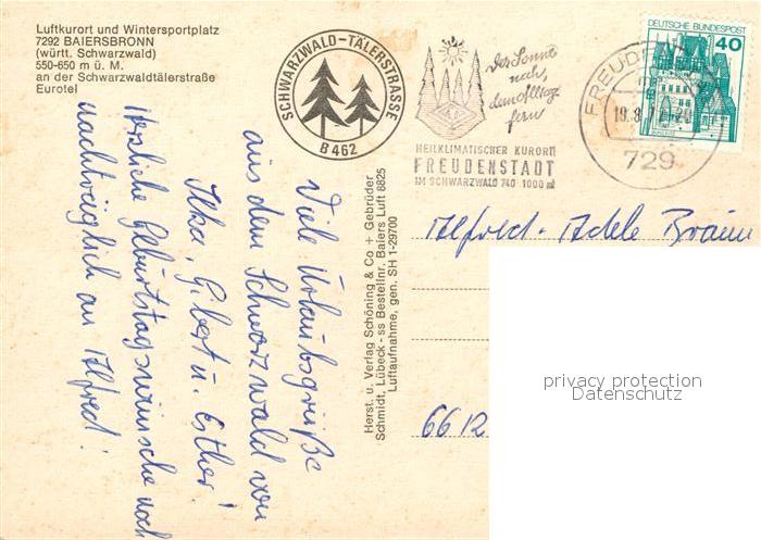73128322 alte Postkarte Baiersbronn Schwarzwald Fliegeraufnahme postalisch gelaufen Erhaltung siehe scans [PaolaD17] KatCode: 11110008237004